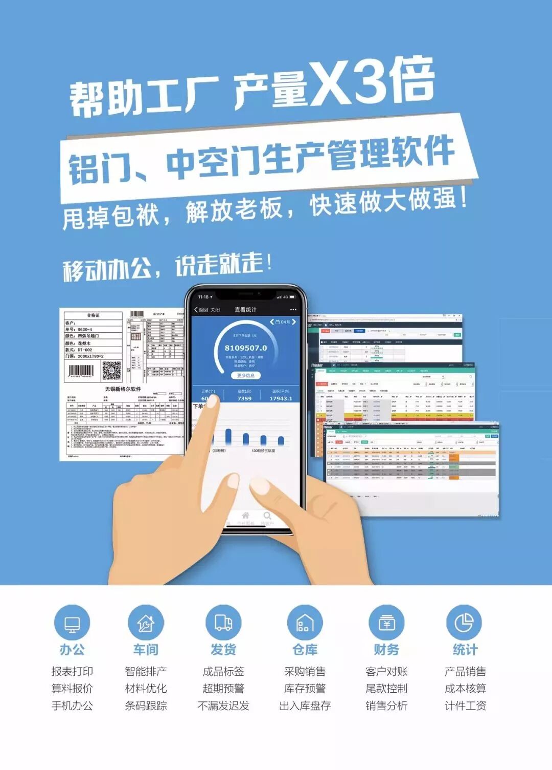 新格尔以软件为核心业务,帮助定制门窗、定制家居工厂实现数字化生产营销管理,提高工厂核心竞争力。同时帮助工厂打通上下游合作伙伴数据,极大限度地提升供应链的运行效率,满足消费者日益增长的高品质家居建材的需求。帮助工厂,3倍增长,是新格尔人孜孜以求的目标。