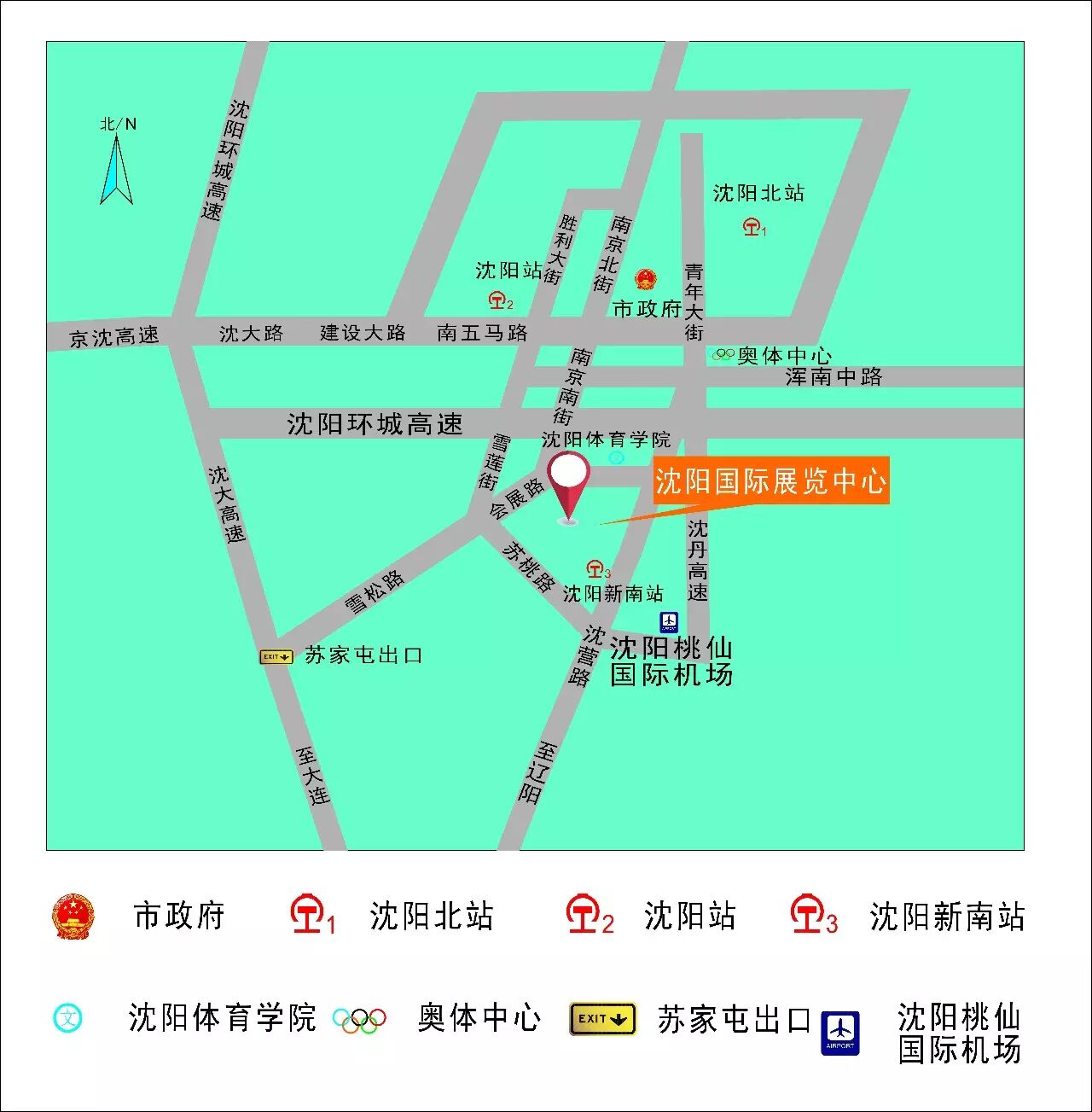 沈海(原沈大)高速公路:至苏家屯收费站,雪松路直行3公里直达沈阳国际展览中心。