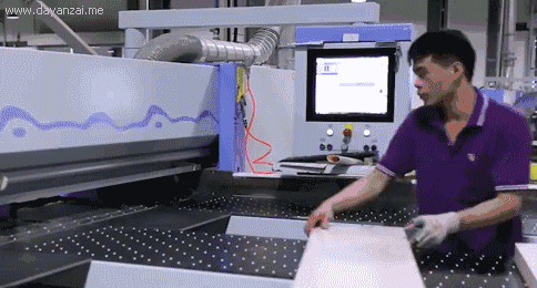 ②数控加工中心开料设备,数控加工中心可以进行边沿为曲线的板件的开料,其基本原理是用铣刀沿着板材边沿直接铣削出深度超过板厚的槽,从而达到切割的目的。