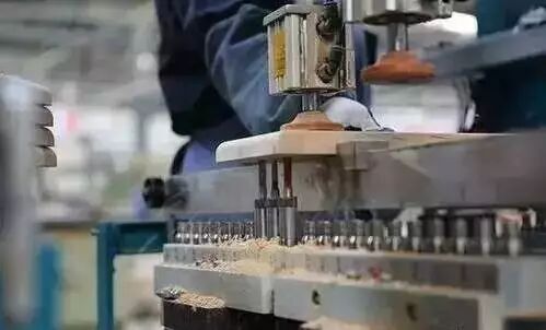 32mm系统的孔眼要求孔径大小一致钻头的尺寸要精准,避免出现钻孔的直径偏差较大的情况。钻孔的深度也要一致,要求钻头高度一致,安装精准。因为数量大、对加工精度要求高,大批量生产时,通常采用多轴钻床加工。多品种小批量生产也可以采用数控钻孔中心来加工。