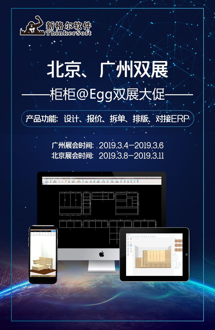 新品全屋定制软件柜柜egg重磅发布,恰逢3月北京、广州两地展会,柜柜推出大促,仅限展会期间。北京展会从今天开始持续至3月11日,欢迎您来新格尔展位看看:中国国际展览中心(顺义新馆)W1馆B21-22 W3馆D05-06。了解活动详情请联系最后方二维码或者点击阅读原文链接,现在来看一下柜柜手机端的操作。