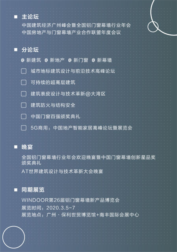 通过分享世界最先进、最前沿的建筑设计,从中国建筑经济发展趋势到新建筑、新地产、新门窗、新幕墙四大主题分论坛活动探析行业尖端趋势,学习世界级建筑技艺。