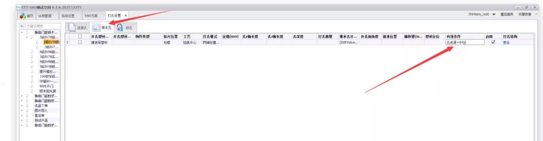 背景:客户的固定框排水孔打孔位置有两套方案,没有中柱和有中柱两种情况孔位不一样,客户原本是在下单条件内进行控制,但是由于下单条件过多,客户想要直接在排水孔打孔的有效条件内设置